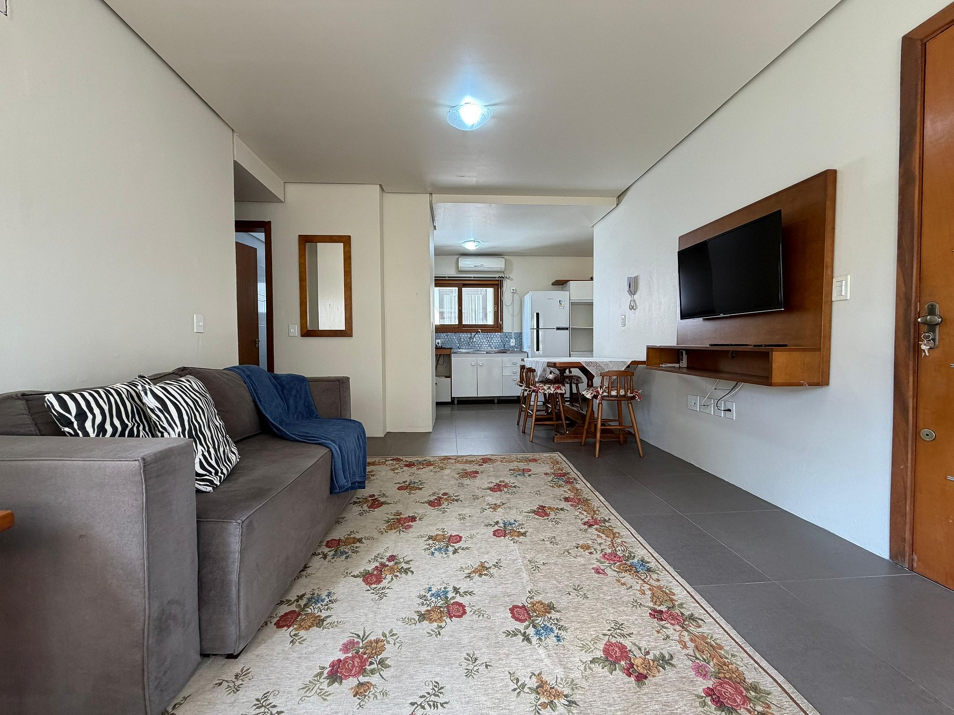 O apartamento é muito bem localizado, fica atrás da Rua Coberta (principal ponto turístico de Gramado), acomoda até 05 adultos e possui 01 vaga de garagem. Podendo deixar o carro na garagem e aproveitar todos os encantos de Gramado a pé.